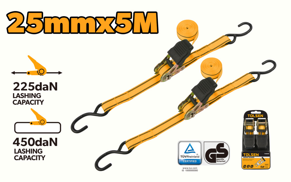 Aceste benzi cu clichet au o latime de 25 mm si o lungime de 5 m, ceea ce le face potrivite pentru a fixa si a lega obiecte cu usurinta. Capacitatea de prindere de pana la 225 daN garanteaza o prindere sigura si stabila.