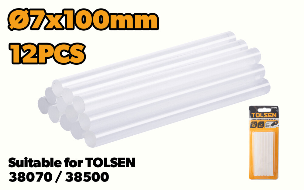Setul include 12 batoane de adeziv cu topire termica Tolsen, asigurând astfel că aveți suficiente batoane pentru a finaliza proiectul fără a fi nevoie să cumpărați mai multe bucăți în timpul lucrului.