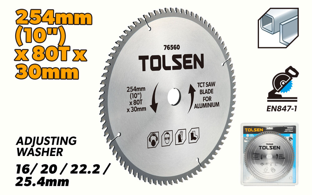 Acest disc circular Tolsen cu vidia pentru aluminiu este ideal pentru taierea precisa si eficienta a aluminiului. Cu dimensiunea de 254x30x80T mm si inele de reducere de 16mm, 20mm, 22.2mm si 25.4mm, acest disc este potrivit pentru o varietate de proiecte de prelucrare a aluminiului.