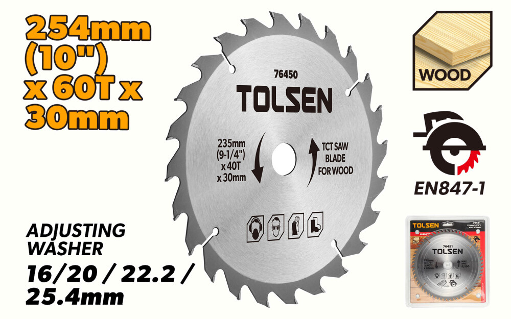Acest disc circular Tolsen cu vidia pentru lemn este ideal pentru taierea precisa si eficienta a lemnului. Cu dimensiunea de 254x30x60T si inele de reducere de 16mm, si 25.4mm, acest disc este potrivit pentru o varietate de proiecte de tamplarie si prelucrare a lemnului.