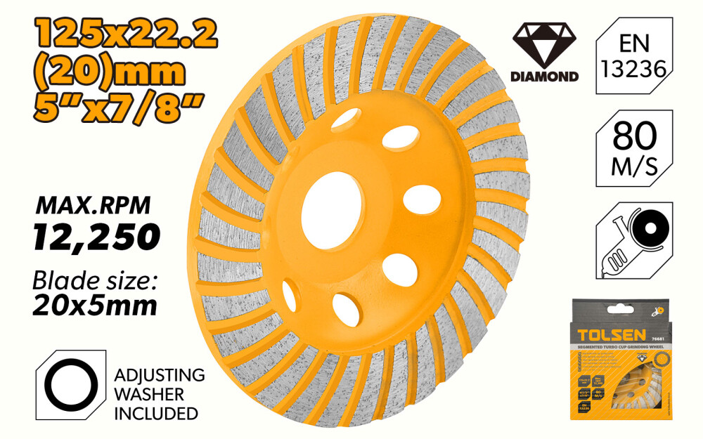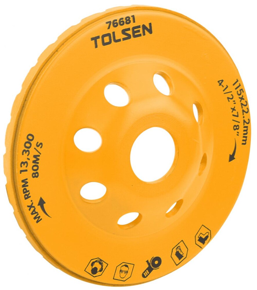 Acest disc diamantat Tolsen este livrat intr-o cutie colorata, ceea ce il face perfect pentru depozitarea si transportul usor. Cu dimensiunea compacta si performanta de slefuire de inalta calitate, acest disc diamantat este un must-have pentru orice constructor sau dulgher care lucreaza cu suprafete de beton.