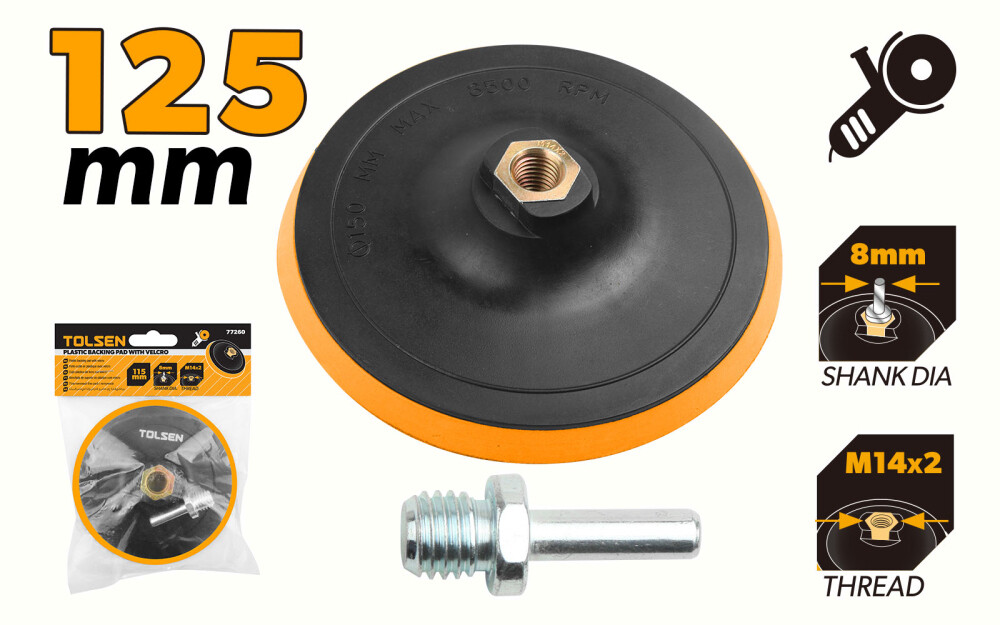Suportul cu velcro de indepartare material are un diametru de 125mm, ceea ce il face potrivit pentru o varietate de discuri abrazive. Acesta este construit cu materiale PP + EVA, astfel incat sa fie usor de manevrat si durabil.