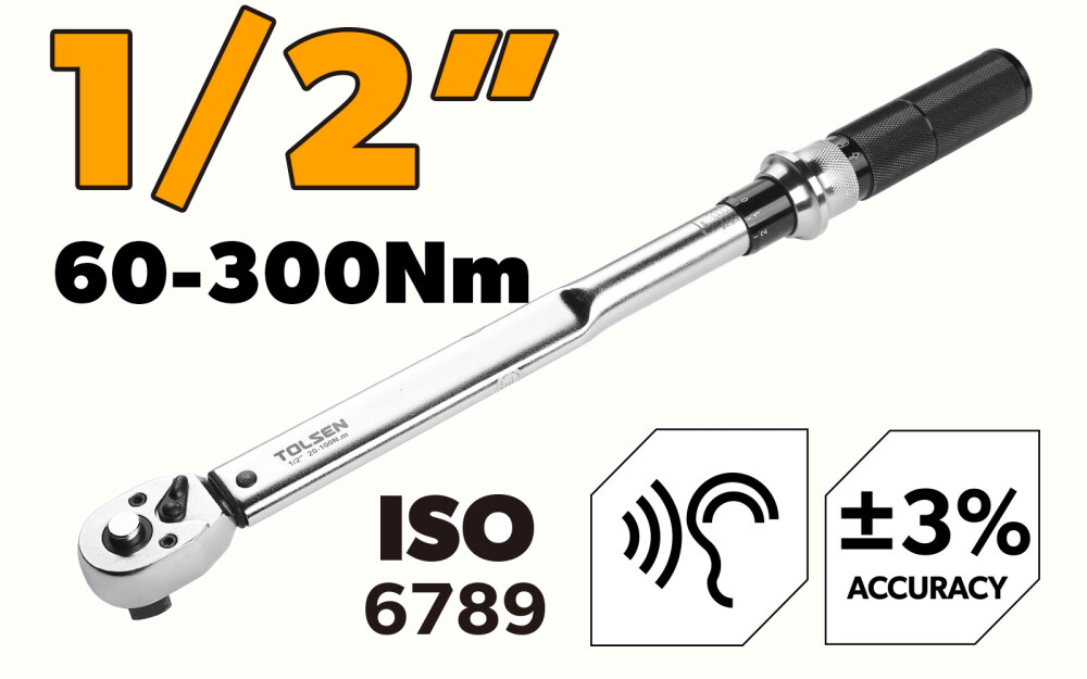 Dimensiune: 1/2 "Interval de cuplu: 60-300N.m. În conformitate cu DIN EN ISO 6789 Tolerantă de precizie de eliberare ± 3% din valoarea scalei Reversibil cu actionare pătrată și functie integrată cu clichet reversibil pentru schimbarea manetei pentru strangere controlată în sensul acelor de ceasornic Semnal de eliberare cand valoarea este atinsă Structura tubului de oblat din otel crom-molibden face o sectiune transversală mică și mai ușor de utilizat în spatiu îngust Ambalare: cutie de culoare