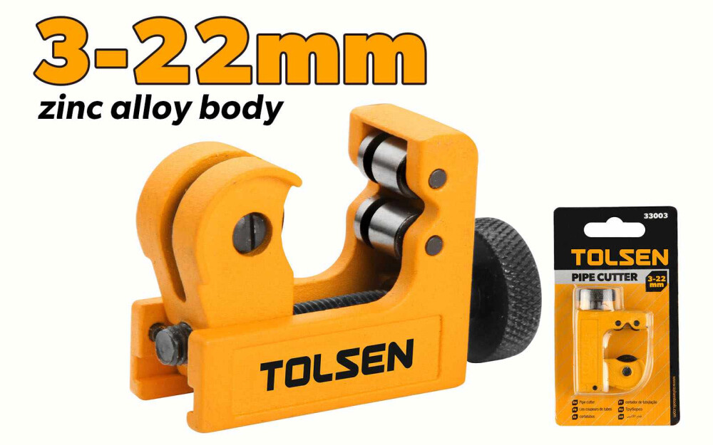 Acest dispozitiv de tăiat tevi Tolsen este conceput pentru a tăia tuburi cu diametrul cuprins între 3 și 22 mm. Fabricat dintr-un corp din aliaj de aluminiu, acest instrument ușor și portabil este perfect pentru a fi utilizat în ateliere, garaje sau pe șantier. Acest dispozitiv simplu și eficient este ideal pentru tăierea tuburilor de cupru, oțel și aluminiu.