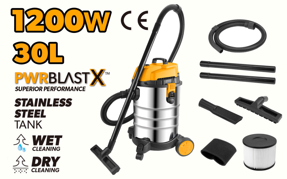 Această unitate de aspirare este perfectă pentru utilizarea atât la domiciliu, cât și la birou. Aparatul de aspirare Tolsen are o putere de intrare de 1200W, tensiunea nominală de 220-240V și frecvența de 50/60Hz, cu un motor cu fir de cupru și un rezervor din oțel inoxidabil cu o capacitate de 30 litri. Acest aparat de aspirare are o capacitate de aer de 1,9m³/min și o presiune de vid de 17KPa.