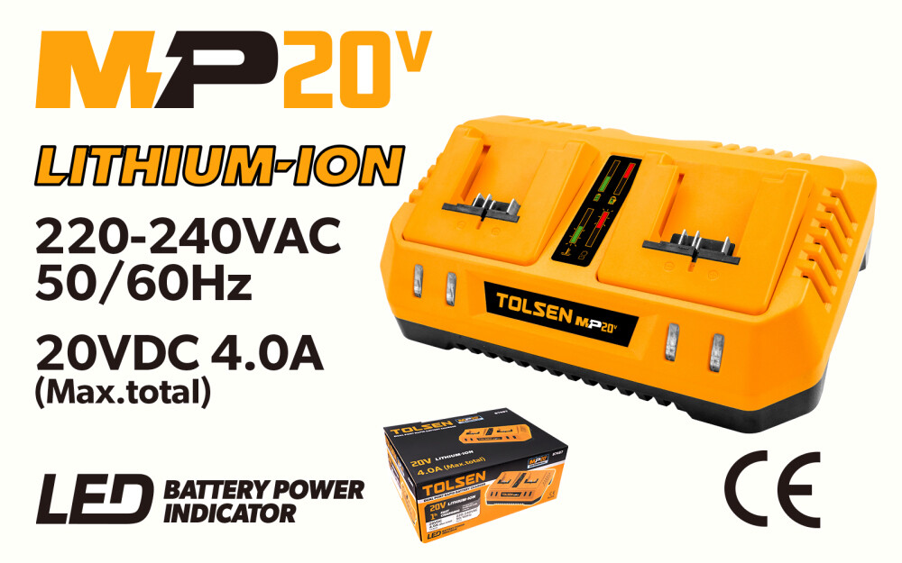 Această unitate permite încărcarea rapidă a bateriilor TOLSEN 20V 87472 și 87474, precum și a două baterii TOLSEN 20V 2.0 Ah în doar 60 de minute, garantându-vă că nu veți pierde timp prețios așteptând ca bateriile să fie complet încărcate.