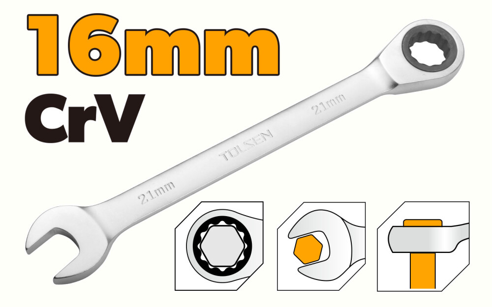 Cheie combinata cu clichet Cr-V 16 mm, Tolsen
