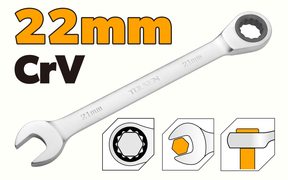 Cheie combinata cu clichet Cr-V 22 mm, Tolsen