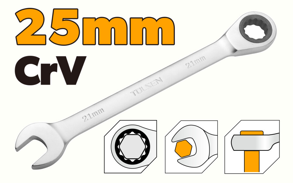 Cheie combinata cu clichet Cr-V 25 mm, Tolsen