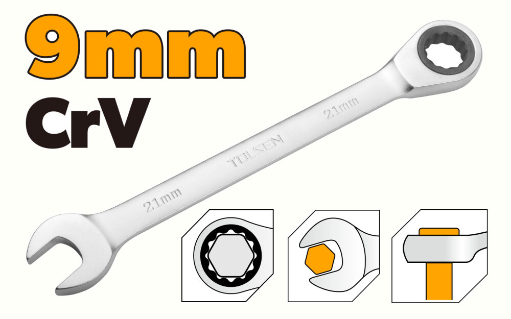 Cheie combinată cu clichet Cr-V 9 mm - Tolsen
