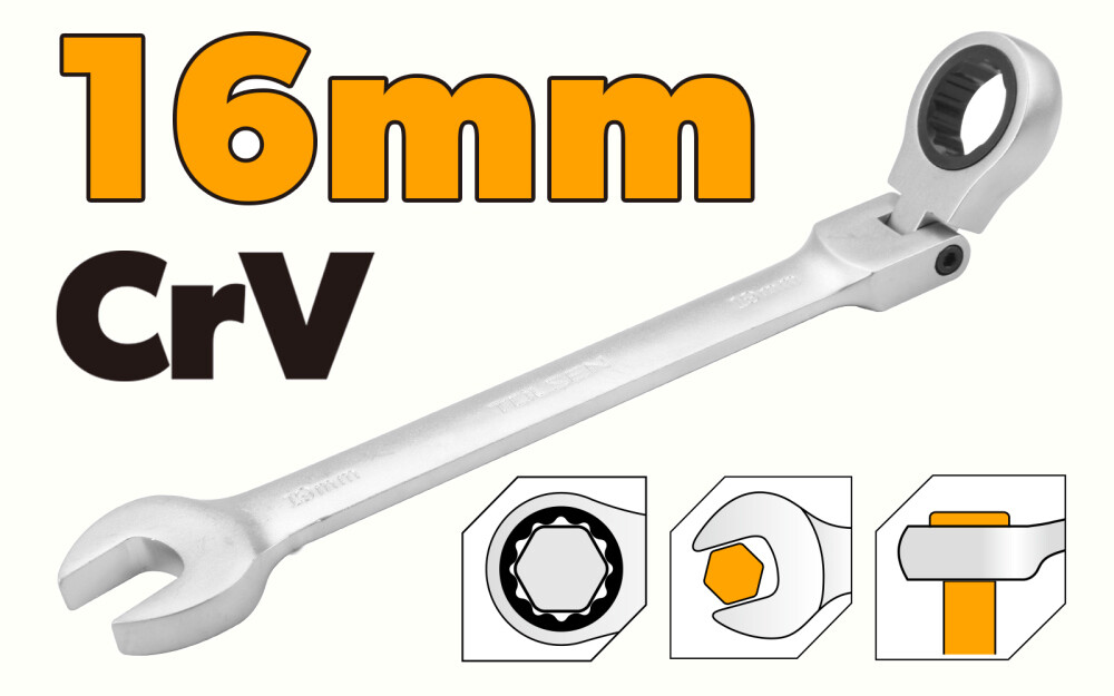 Cheie combinata cu clichet cap flexibil, 16mm - Tolsen