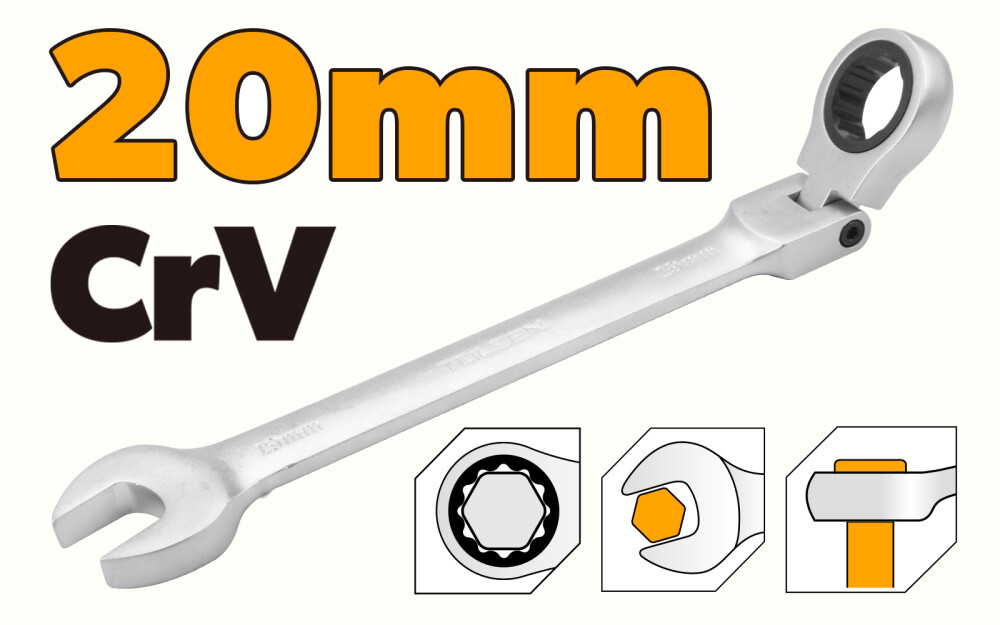 Cheie combinata cu clichet cap flexibil, 20mm, Tolsen
