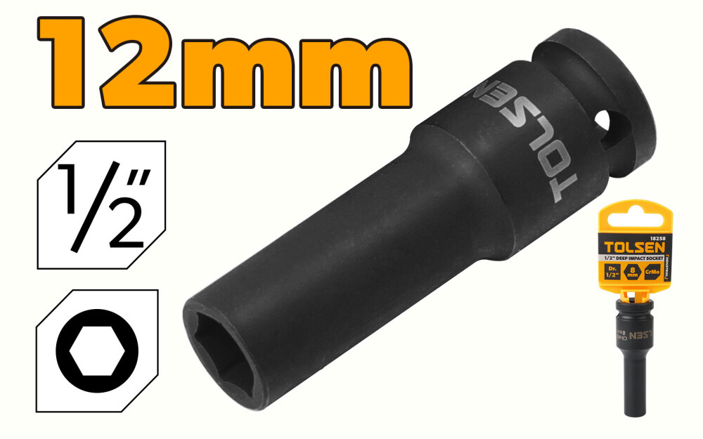 Cheie tubulara lunga de impact, 1/2", 12 mm, CrMo, Tolsen