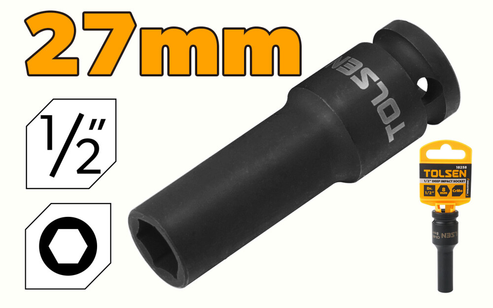 Cheie tubulara lunga de impact, 1/2", 27 mm, CrMo, Tolsen