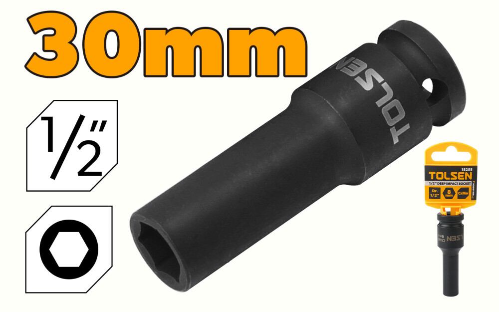 Cheie Tubulara lunga de Impact 1/2", 30 mm, CrMo - Tolsen