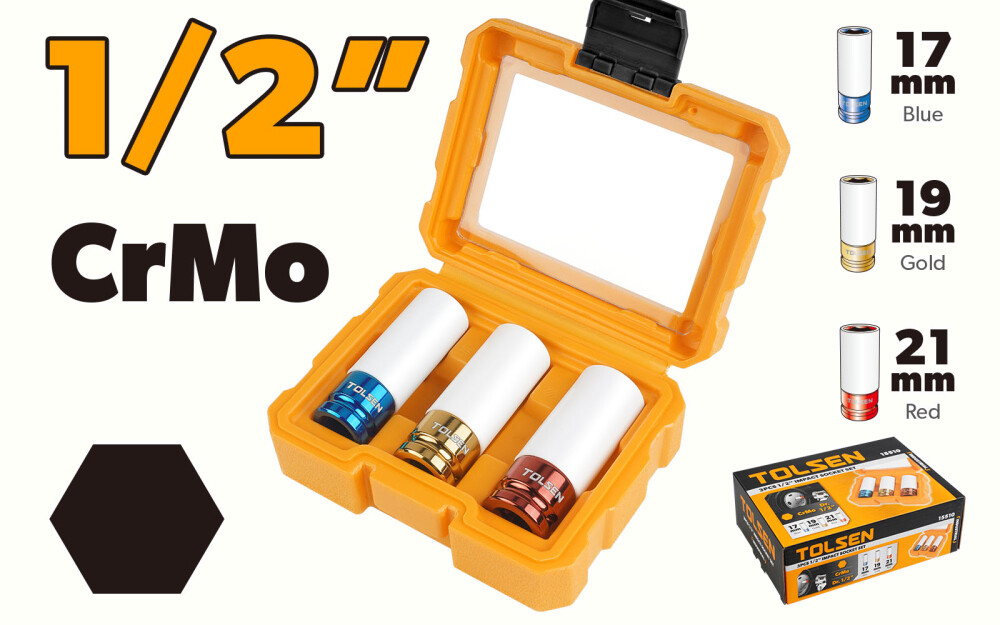 Fabricate din material CrMo, tratat termic, aceste chei tubulare de impact sunt protejate de un capac de protecție PP și sunt supuse unei tratări a suprafeței de oxidare pentru a oferi o durată de viață îndelungată. În plus, fiecare dimensiune are o culoare specifică, astfel încât să le poți identifica ușor în timpul lucrului: 17mm - albastru, 19mm - aur și 21mm - roșu.