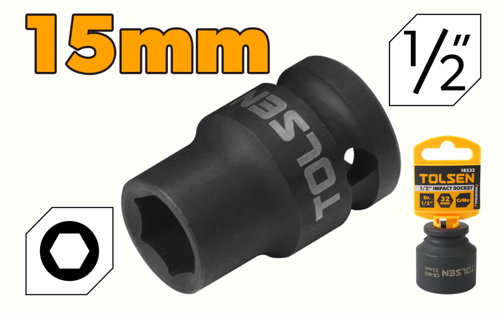 Cheie tubulara de impact, 1/2", 15 mm, CrMo, Tolsen
