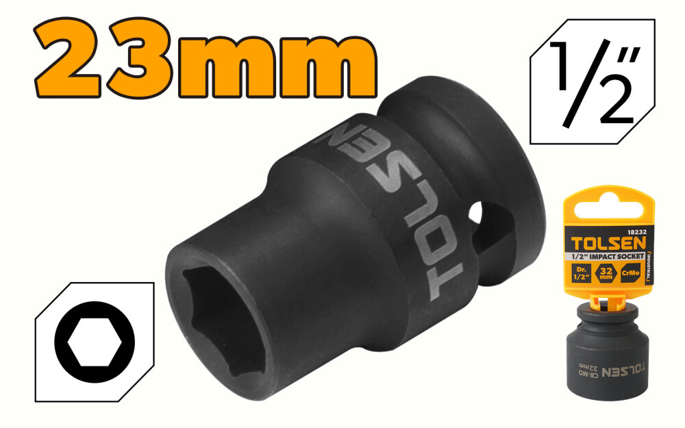 Cheie tubulara de impact, 1/2", 23 mm, CrMo, Tolsen