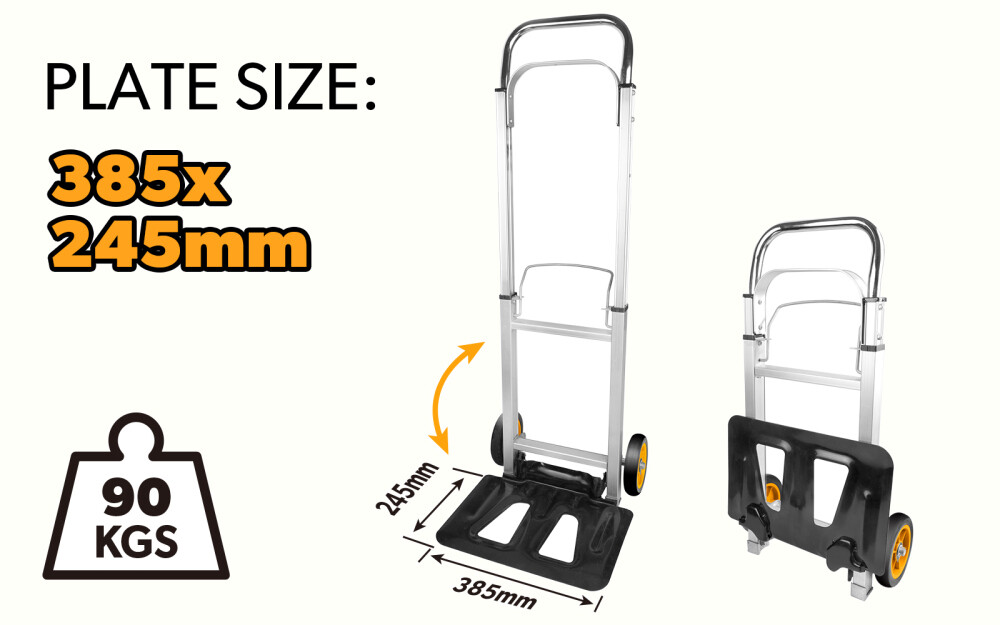 Cu platforma Liza pliabila cu platforma 90 kg de la Tolsen, transportul obiectelor grele devine mai usor si mai comod. Cu o capacitate de incarcare maxima de 90 de kilograme, aceasta este solutia perfecta pentru a va ajuta sa transportati diverse obiecte.