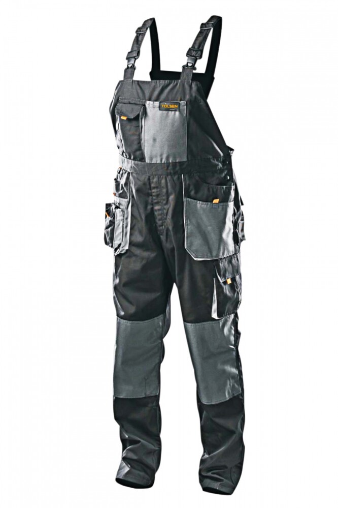 Salopeta de lucru Tolsen este ideala pentru munca zilnica in constructii sau in ateliere. Fabricata dintr-un material durabil, din 80% poliester si 20% bumbac, aceasta salopeta ofera confort si functionalitate, fiind echipata cu buzunare multiple si detalii reflexive pentru o vizibilitate optima in conditii de luminozitate scazuta. Pentru protectia suplimentara, aceasta salopeta are intarituri cu tesatura Oxford pe genunchi si cusaturi triple in locurile predispuse la ruptura. De asemenea, aceasta salopeta are o curea suplimentara pentru reglarea marimii.