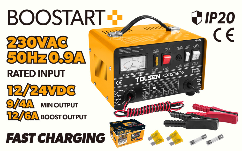 Acest redresor auto este ambalat într-o cutie de culoare pentru a fi protejat și pentru a facilita prezentarea și depozitarea. Indiferent dacă aveți nevoie să încărcați bateria unui autoturism, motocicletă sau orice alt vehicul cu baterie de 12V sau 24V, acest redresor de la Tolsen vă oferă soluția rapidă și sigură de care aveți nevoie.