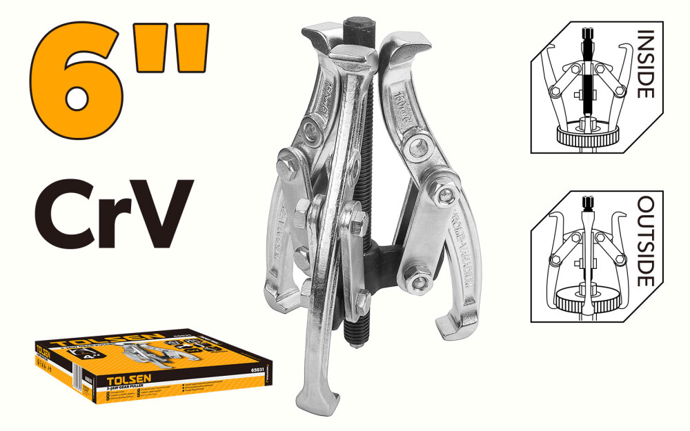 Acest extractor de roti dintate Tolsen are aceeasi calitate ca si cele de la Stanley, si este fabricat din otel special Cr-V cu tratament termic pentru a asigura durabilitatea si fiabilitatea in utilizare. Acesta este prevazut cu trei falci de 6 inch, care permit o prindere sigura si ferma a rotilor dintate pentru a facilita demontarea lor.