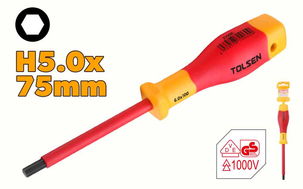 Surubelnita hexagonala izolata H5x75 mm, VDEline PREMIUM, Tolsen