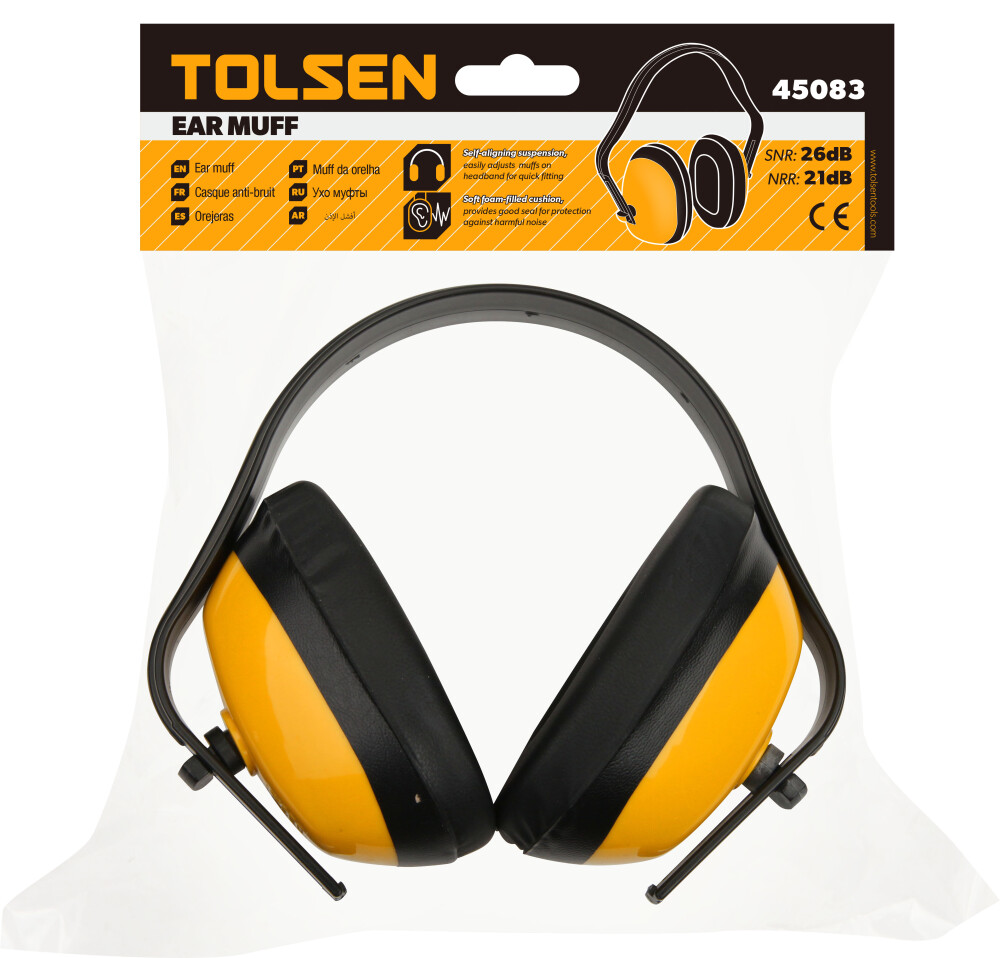 Antifoanele externe Tolsen sunt aprobate conform standardelor CE si ANSI, astfel incat sa te poti bucura de siguranta si calitate in utilizare. Suspensia auto-alinianta permite reglarea usoara a protectiilor de urechi, asigurand o potrivire rapida si confortabila. Pernele moi umplute cu spuma ofera o etansare buna pentru protectie impotriva zgomotelor daunatoare.