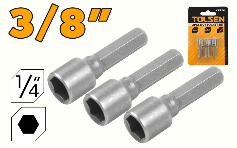 3/8“ Fără magnet Vârfuri hexagonale de 1/4" Lungime: 38 mm Ambalaj: carton cu plastic transparent