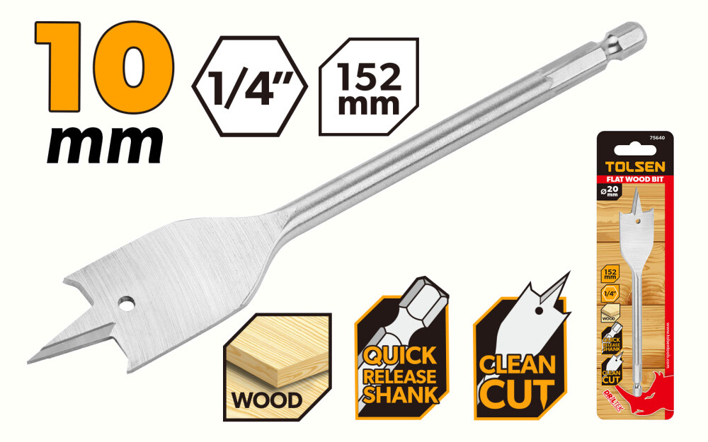 Burghie plate pentru lemn 10mm, Tolsen