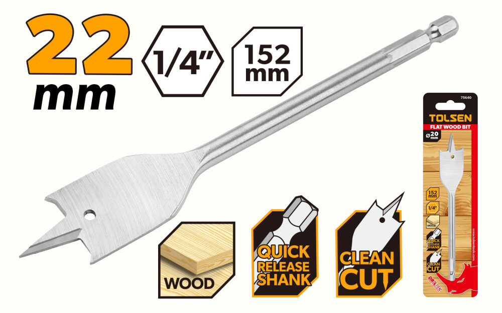 Acest burghiu plat pentru lemn Tolsen este ideal pentru utilizarea la domiciliu sau in mediul industrial. Fabricat din otel carbon de inalta calitate si cu un finisaj polizat, acest burghiu este durabil si poate fi folosit cu usurinta pe o varietate de materiale din lemn.