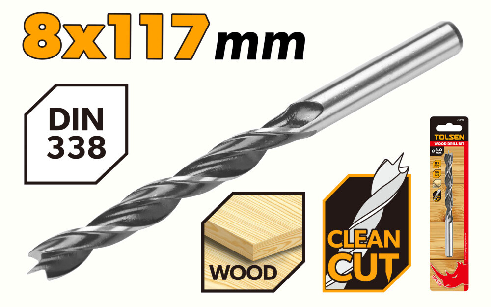 Acest burghiu Tolsen este fabricat din otel carbon de inalta calitate conform standardului DIN338, ceea ce il face durabil si ideal pentru utilizarea pe o varietate de materiale din lemn. Dimensiunea sa de 8x117mm il face ideal pentru utilizarea in proiecte mai mari sau pentru gaurirea in materiale mai groase. Acest burghiu este tratat termic si are o duritate ridicata, ceea ce il face ideal pentru o varietate de aplicatii de gaurire in lemn. Finisajul negru cu suprafata polisata ii confera un aspect estetic placut si ii protejeaza impotriva coroziunii. Este livrat intr-un blister card, ceea ce face depozitarea si transportul mai usoare.