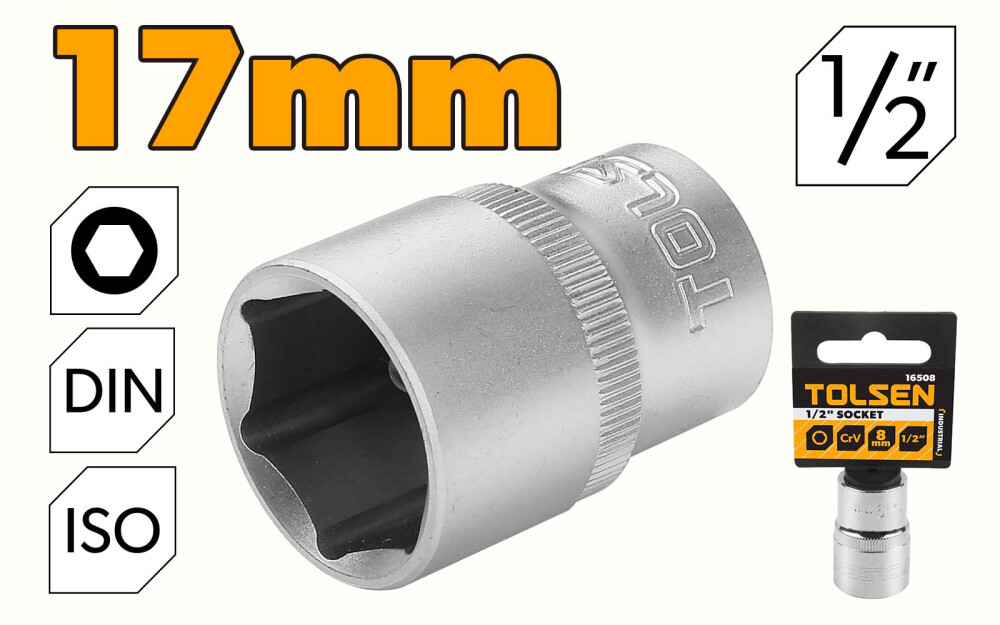 Cheie tubulara de 1/2" Cr-V 17 mm, Industrial, Tolsen