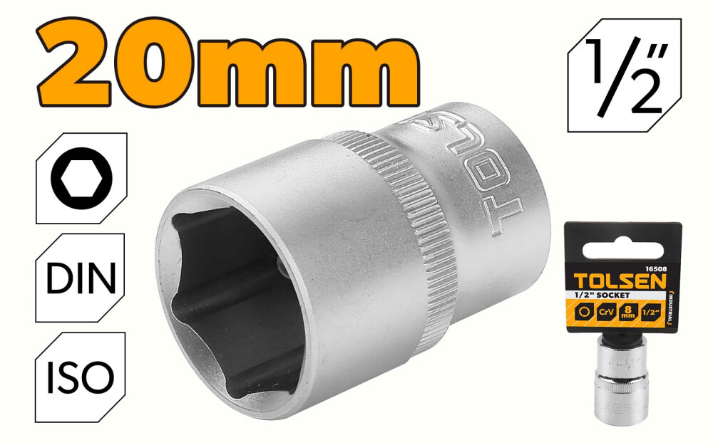 Cheie tubulara de 1/2" Cr-V 20 mm, Industrial, Tolsen