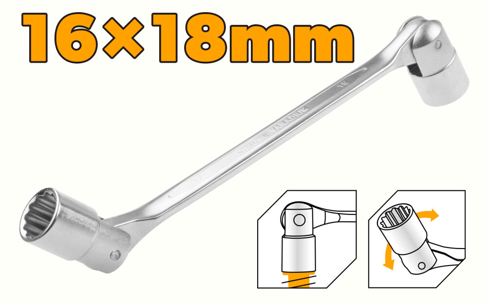 Cheie dublă tubulară cu capăt rotativ  16x18 mm- Tolsen