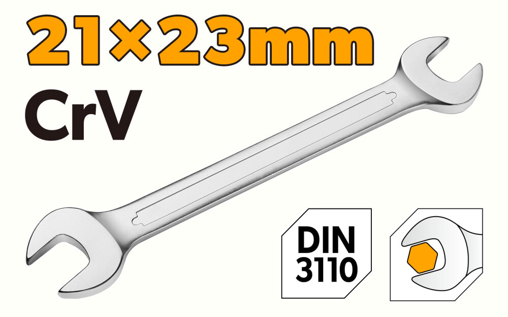 Cheie de piulite cu capat deschis dublu Cr-V 21x23 mm, Industrial - Tolsen