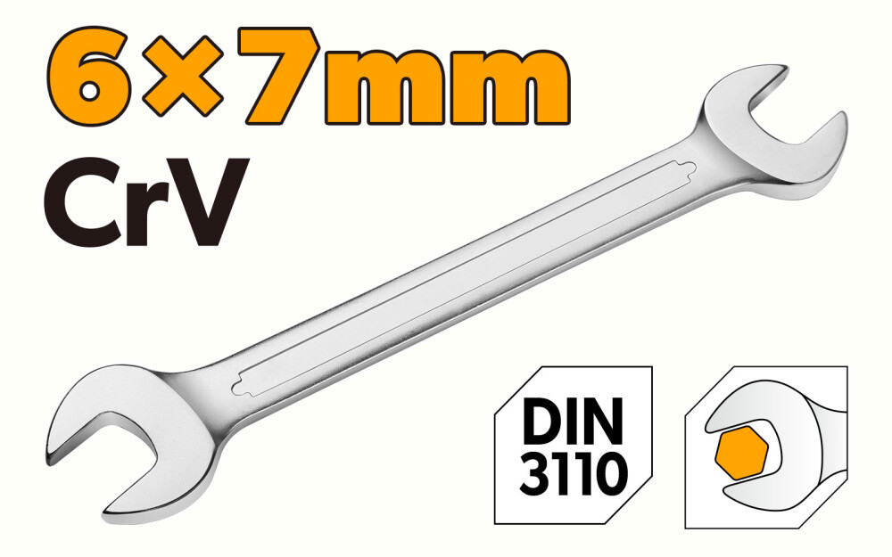 Cheie de piulite cu capat deschis dublu Cr-V 6x7 mm, Industrial - Tolsen