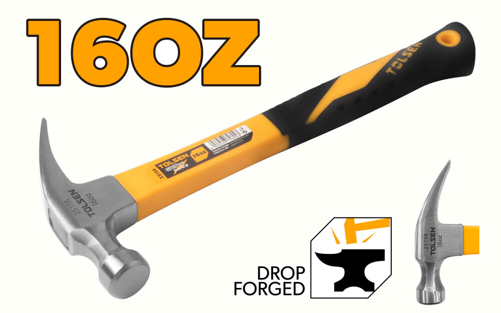 Ciocan cu vârf curbat 450 g, mâner din fibră de sticlă GRIPro - Tolsen
