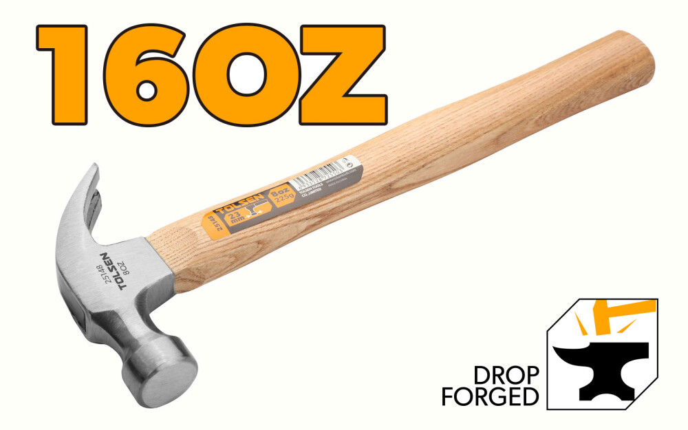 Ciocan cu varf curbat 450 g, maner din lemn, Tolsen