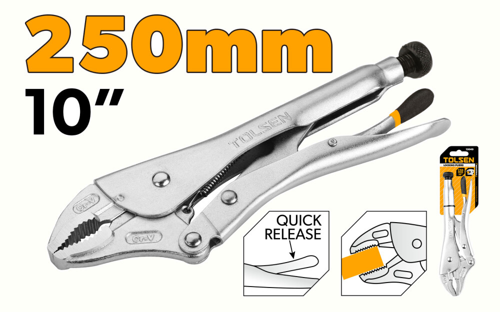 Cu finisajul său nichelat, acest clește are un aspect modern și este protejat împotriva coroziunii și a oxidării. Ambalat într-un suport de plastic convenabil, acest clește cu autoblocare Cr-V 250 mm - Tolsen este ușor de depozitat și transportat. Dacă ești în căutarea unui clește de calitate superioară pentru a-ți ușura munca, nu căuta mai departe decât Tolsen.