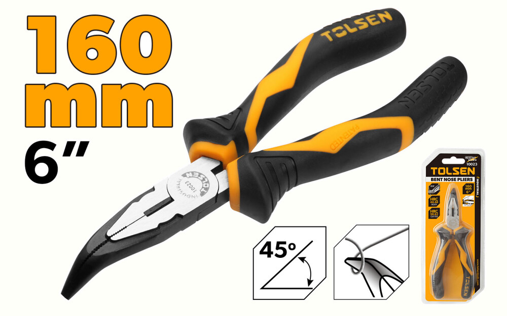 Descoperă cleștele cu vârf ascuțit îndoit 160 mm GRIPro, Industrial de la Tolsen, cel mai bun partener pentru munca ta. Cu o lungime de 160 mm (6"), acesta este conceput pentru a îndeplini nevoile oricărui profesionist. Fabricat din Cr-V și finisat cu o culoare neagră, acesta este durabil și rezistent la coroziune, făcându-l potrivit pentru o varietate de aplicații industriale. Cu un mâner din plastic bicolor, cleștele este confortabil și sigur în mână. Ambalat într-un blister dublu, acesta este ușor de depozitat și transportat.