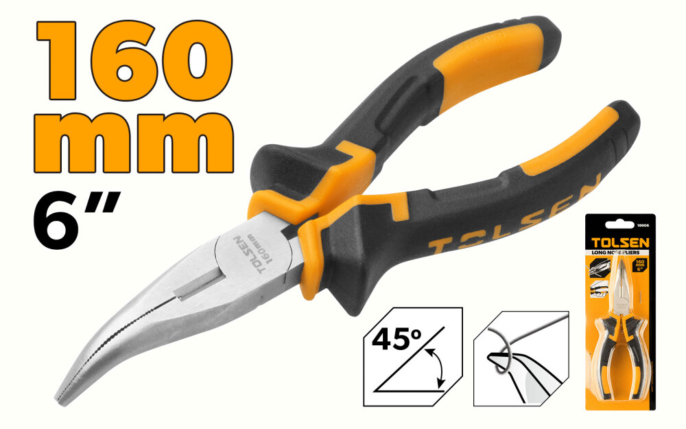 Descoperă noul clește Tolsen cu vârf ascuțit îndoit de 160mm, perfect pentru toate nevoile tale! Cu o construcție specială din oțel forjat, cleștele este placat cu nichel pentru a oferi o protecție maximă împotriva coroziunii.