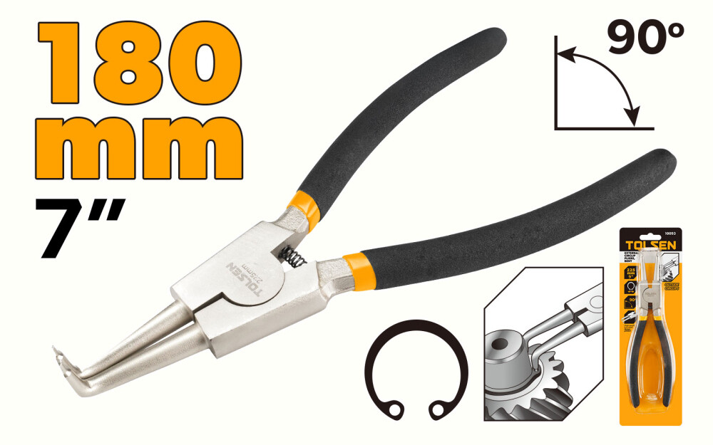 Îți prezentăm cleștii de inele siguranță de la Tolsen, instrumentul perfect pentru a te asigura că lucrurile tale rămân la locul lor! Acești clești sunt fabricați din oțel de calitate superioară și au fost placati cu nichel pentru a oferi o protecție suplimentară împotriva coroziunii. Mânerul este acoperit cu un strat de material moale pentru a-ți oferi confortul necesar în timpul utilizării.