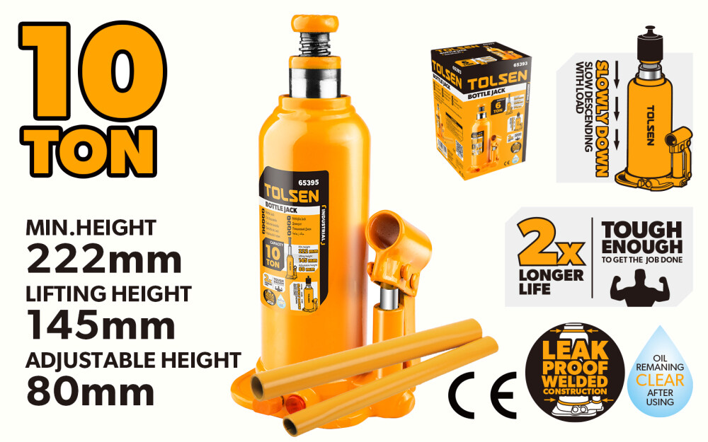 Cricul hidraulic Tolsen este un instrument industrial robust, proiectat pentru a oferi o capacitate de ridicare de 10 tone. Acesta este ideal pentru utilizări în ateliere auto și în diverse aplicații industriale. Cu o construcție de calitate și caracteristici avansate, acest cric oferă siguranță și eficiență în ridicarea vehiculelor sau a obiectelor grele.