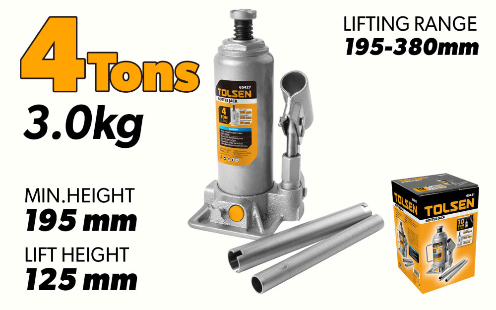 Cricul hidraulic Tolsen este un instrument fiabil și eficient, ideal pentru ridicarea vehiculelor și a obiectelor grele. Cu o capacitate de 4 tone, acest cric este perfect pentru utilizări atât în ateliere auto, cât și în garaje personale.