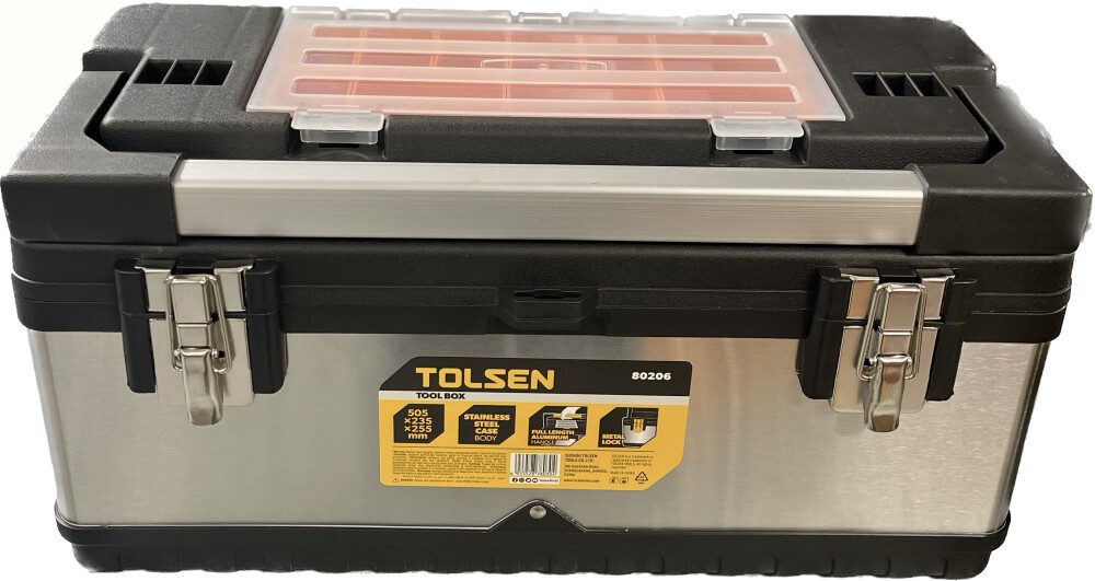Capac din oțel inoxidabil Corp din plastic ranforsat Mâner din aliaj de aluminiu și catarame din oțel (cu tavă) 59x28x25.5 cm