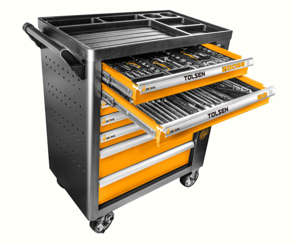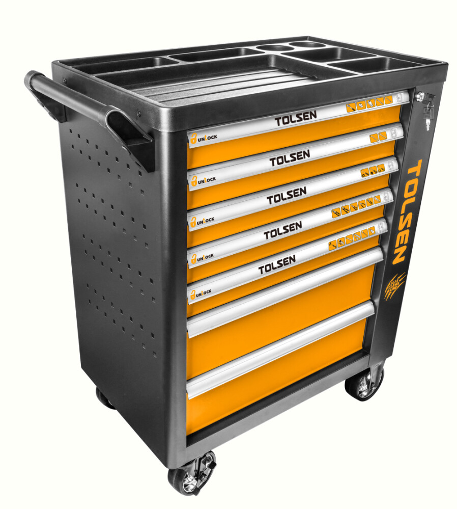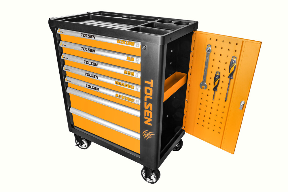 Acest dulap mobil Tolsen îÈ›i oferă acces rapid È™i organizat la o gamă largă de scule esenÈ›iale pentru proiectele tale de lucru manual È™i reparatii.