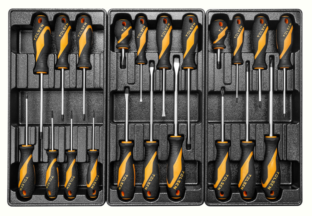 - 7 șurubelnițe Phillips: PH0x100mm, PH1x75mm, PH1x100mm, PH2x38mm, PH2x100mm, PH2x150mm, PH3x150mm