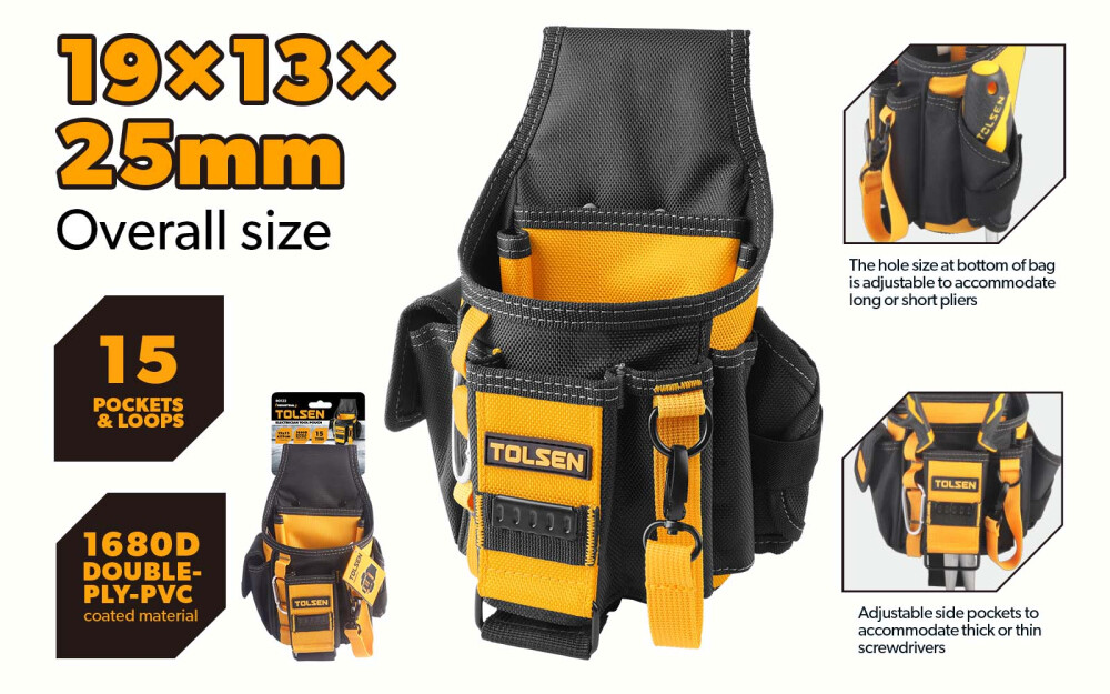 Geanta Electrician cu 15 Buzunare si Curea, 19x13x25cm, Industrial, Tolsen