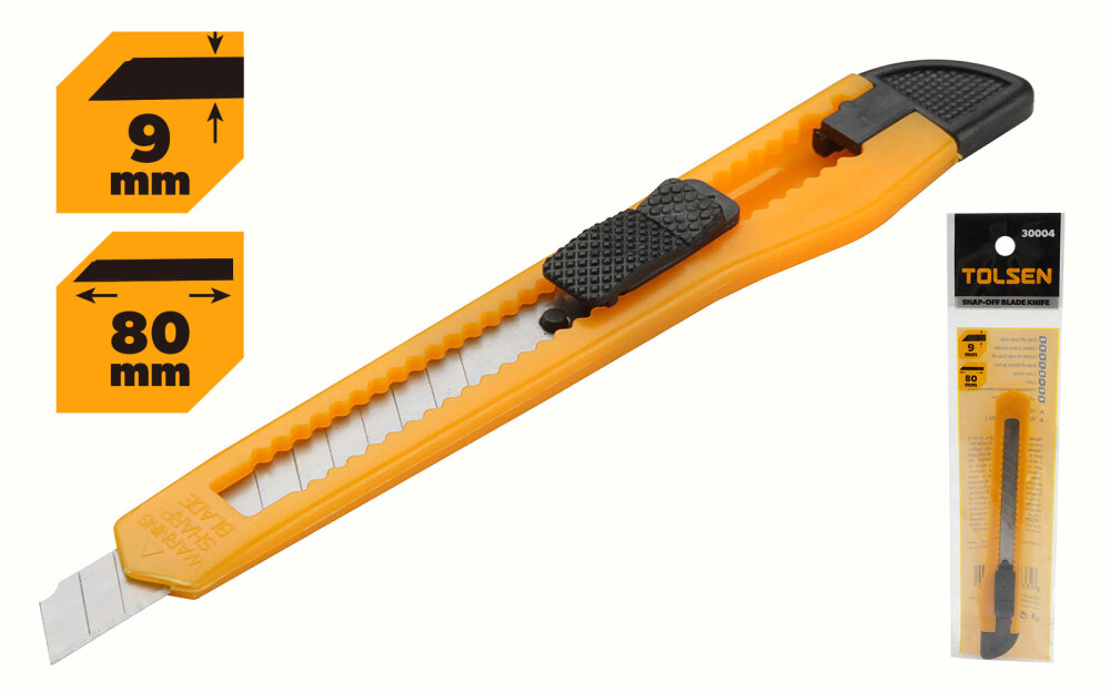 Cutterul cu lama cu clic Tolsen de 9x80 mm cu carcasa din plastic ABS este alegerea perfectă pentru a-ți ușura munca în diverse proiecte de bricolaj sau în construcții. Cu o lamă ascuțită și un mâner ergonomic cu buton plat, acest cutter este perfect pentru tăierea rapidă și precisă a materialelor de diferite densități și grosimi. Carcasa din plastic ABS oferă o protecție excelentă împotriva uzurii și a coroziunii, ceea ce face acest cutter un instrument durabil și de încredere. Ambalat într-un sac OPP, acest cutter este ușor de utilizat și de depozitat în orice loc.